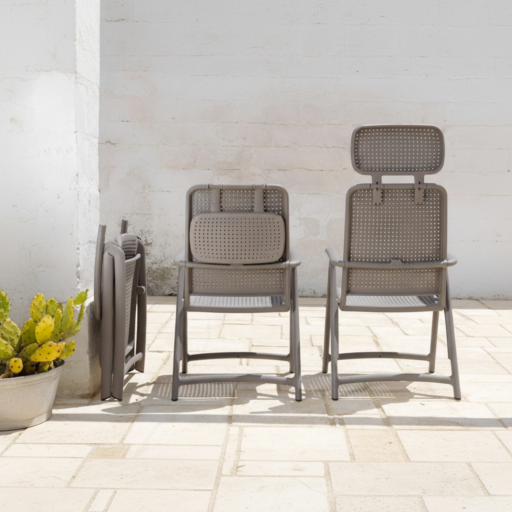 La Poltrona Acquamarina Nardi in colorazione antracite trasforma ogni spazio esterno in un'oasi di comfort grazie allo schienale regolabile in 4 posizioni e al design pieghevole salvaspazio. Realizzata in polipropilene fiberglass trattato anti-UV, resiste alle intemperie e garantisce durabilità nel tempo, perfetta per terrazze residenziali, bordi piscina e progetti contract di hotel e resort.