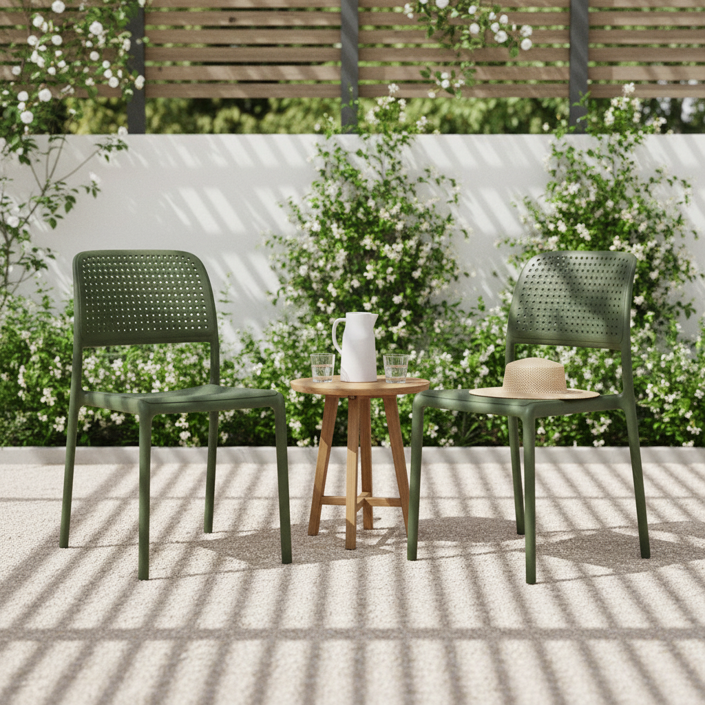 Perfetta per arredare terrazze, balconi e giardini privati, la sedia Bora Bistrot si adatta a dehors, verande e bordi piscina grazie alla resistenza agli agenti atmosferici e al design ergonomico. Ideale per cene estive all'aperto, aperitivi in terrazza, feste e ricevimenti, è la scelta preferita da ristoranti, bar, bistrot, caffetterie, hotel, resort, location per eventi e showroom che cercano sedute contract confortevoli, versatili, facili da pulire e da stoccare grazie alla funzione impilabile.