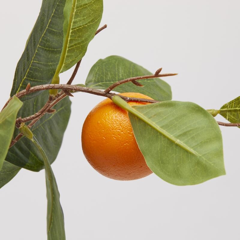 Künstlicher Zierzweig mit 8 naturgetreuen Orangen und detailreichem grünem Laub. Ideal für Blumenarrangements, Schaufensterdekorationen, saisonale Dekorationen und Einrichtungen im mediterranen Stil.