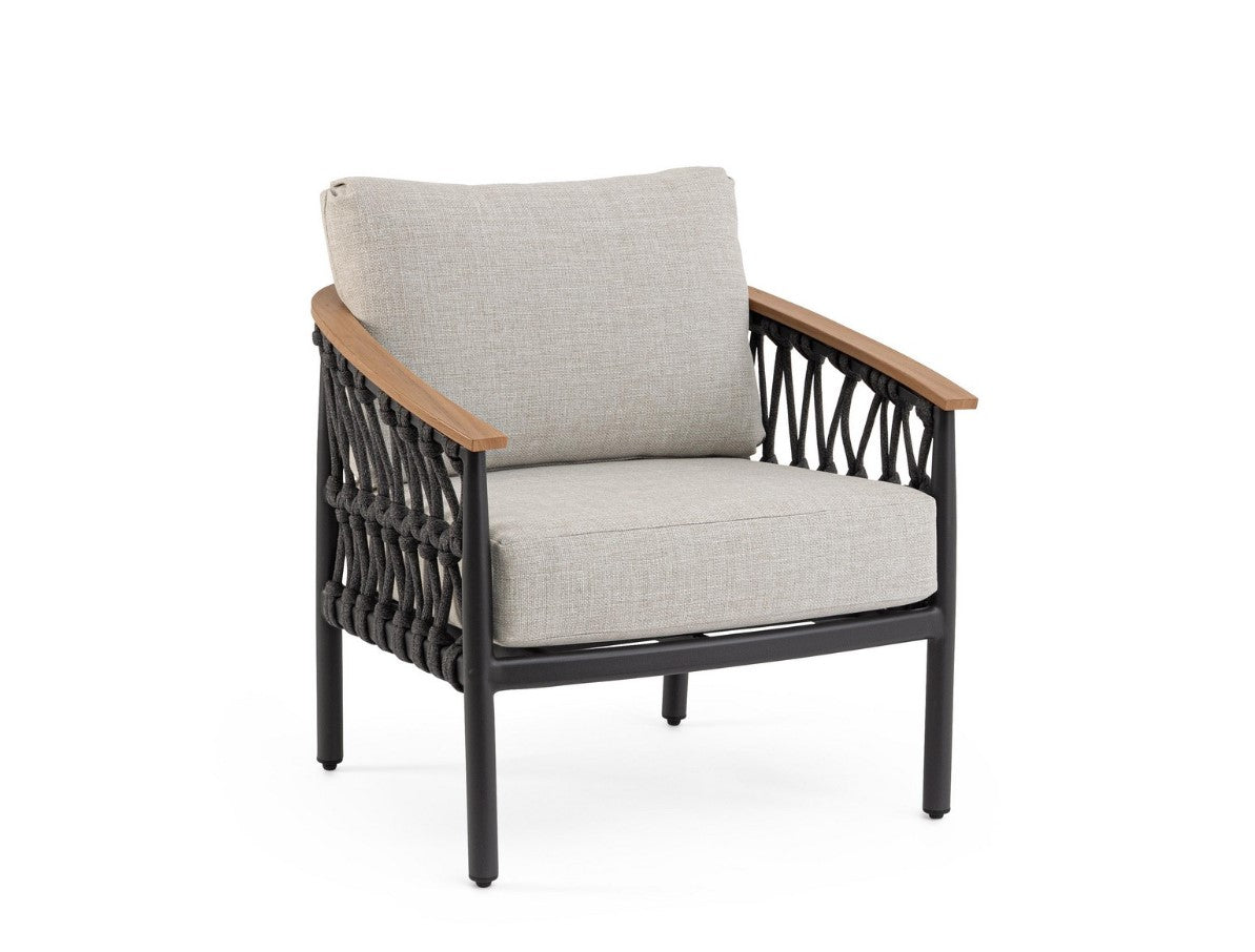 Bizzotto Fenix Poltrona Antracite Corda Olefin Alluminio Effetto Legno