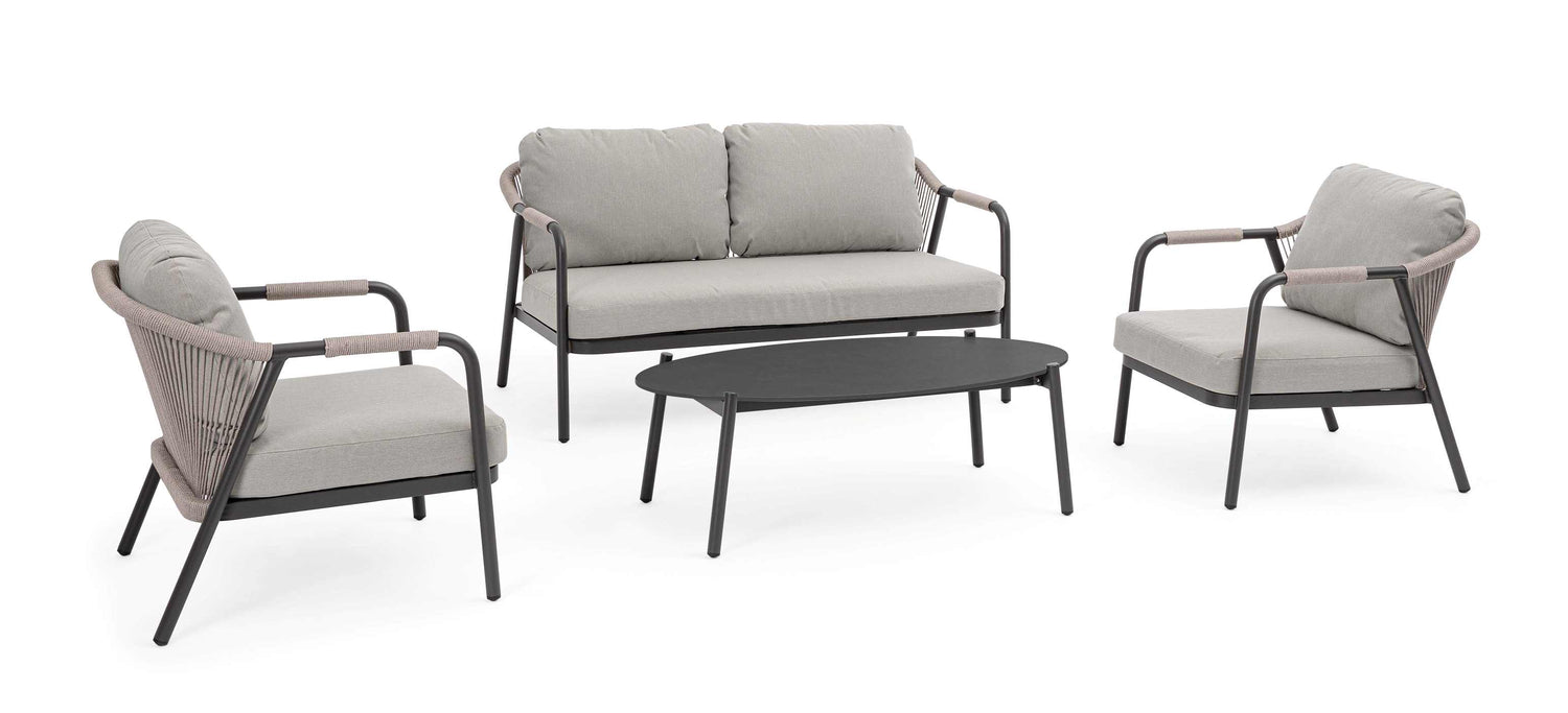 Bizzotto Miravet Set Salotto Antracite Alluminio Corda 4 Pezzi