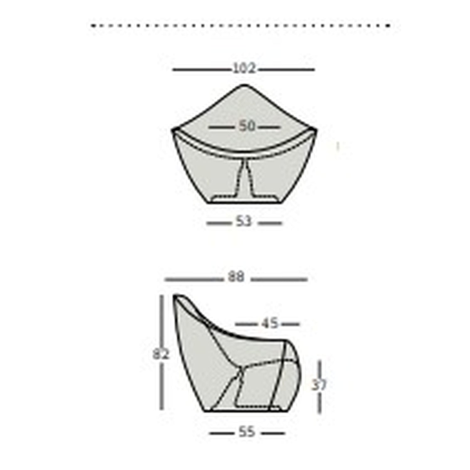 88 cm di larghezza, 55 cm di profondità, 53 cm di altezza seduta, 82 cm di altezza totale: dimensioni generose per una seduta avvolgente e confortevole.