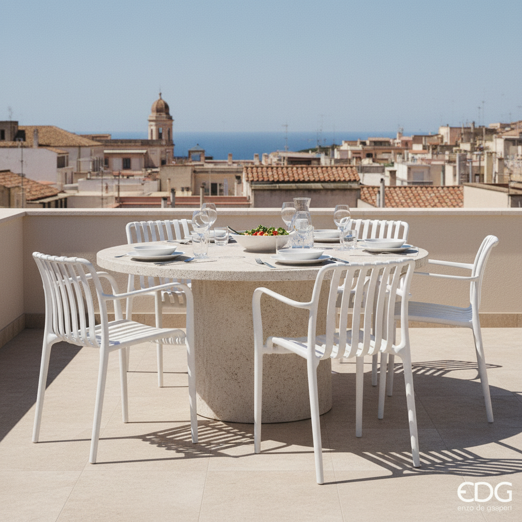 La Sedia Righe Bianco si integra con leggerezza su terrazze, bordi piscina e verande coperte, dove il bianco amplifica la luminosità degli spazi e valorizza la vegetazione circostante. Perfetta per cene estive all'aperto, aperitivi in giardino e ricevimenti su balcone. In ambito contract è scelta ricorrente per ristoranti con dehors, hotel e resort che cercano sedie outdoor di design italiano con bassa manutenzione e massima versatilità cromatica.