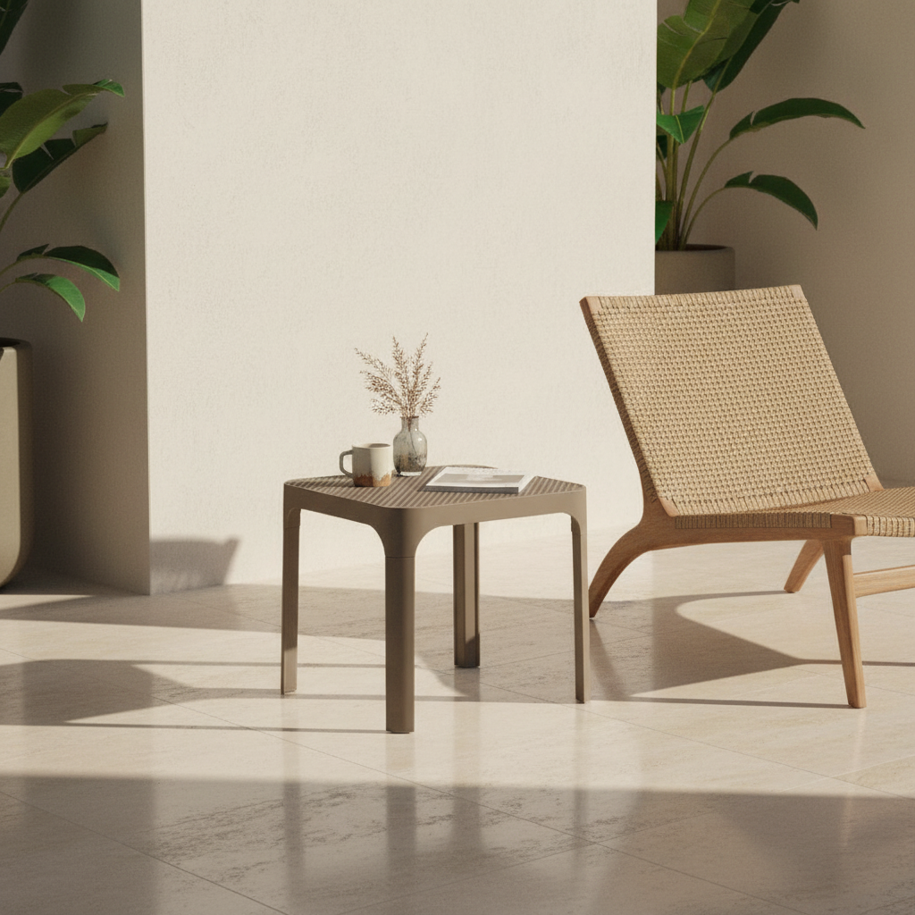 Il tavolino Nardi Net Table 40 in colore Tortora trasforma ogni angolo outdoor e indoor in uno spazio elegante e naturale. Realizzato in polipropilene fiberglass con trattamento anti-UV e colorazione in massa, questo tavolino quadrato da 40×40 cm unisce design traforato decorativo e resistenza agli agenti atmosferici, perfetto come tavolino d'appoggio per terrazze, giardini, bordi piscina e zone lounge contract. Il piano con angoli stondati e motivo traforato richiama il design della collezione Net, mentre la finitura opaca in tonalità tortora beige neutro porta eleganza sobria in ambienti naturali, contemporanei e palette neutre raffinate.