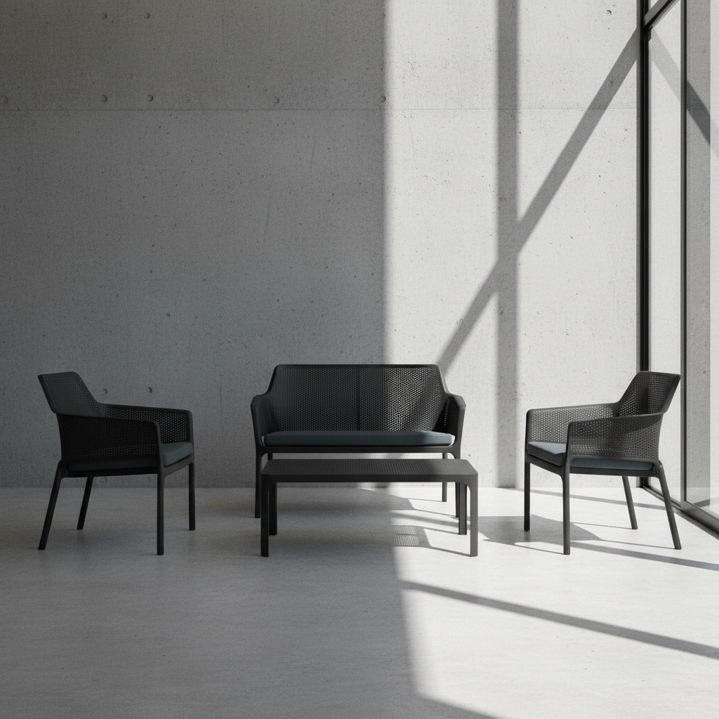 Il tavolo Nardi Net Table in antracite rappresenta la soluzione ideale per chi cerca design e funzionalità negli spazi outdoor lounge, dalle terrazze private alle aree relax di hotel. Realizzato in polipropilene fiberglass con motivo traforato rotondo, dimensioni 100×60 cm e altezza bassa 40 cm, garantisce resistenza e leggerezza, perfetto per bordi piscina, terrazze lounge, resort e location eventi che richiedono tavoli contract versatili, resistenti e dal design contemporaneo traforato che favorisce il drenaggio dell'acqua.