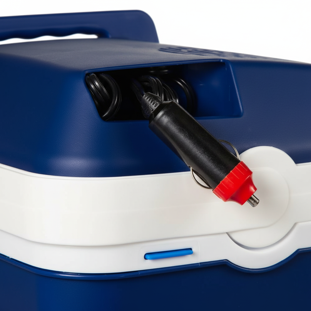 Vor der Reinigung immer vom Zigarettenanzünder trennen; Kabel oder Stecker nicht ins Wasser tauchen. Innenraum mit lauwarmem Wasser und milder Seife reinigen; Lösungsmittel oder Scheuermittel vermeiden. Gründlich ausspülen und mit geöffnetem Deckel trocknen, um Geruchsbildung zu vermeiden. Am Ende der Saison an einem trockenen Ort mit leicht geöffnetem Deckel lagern.